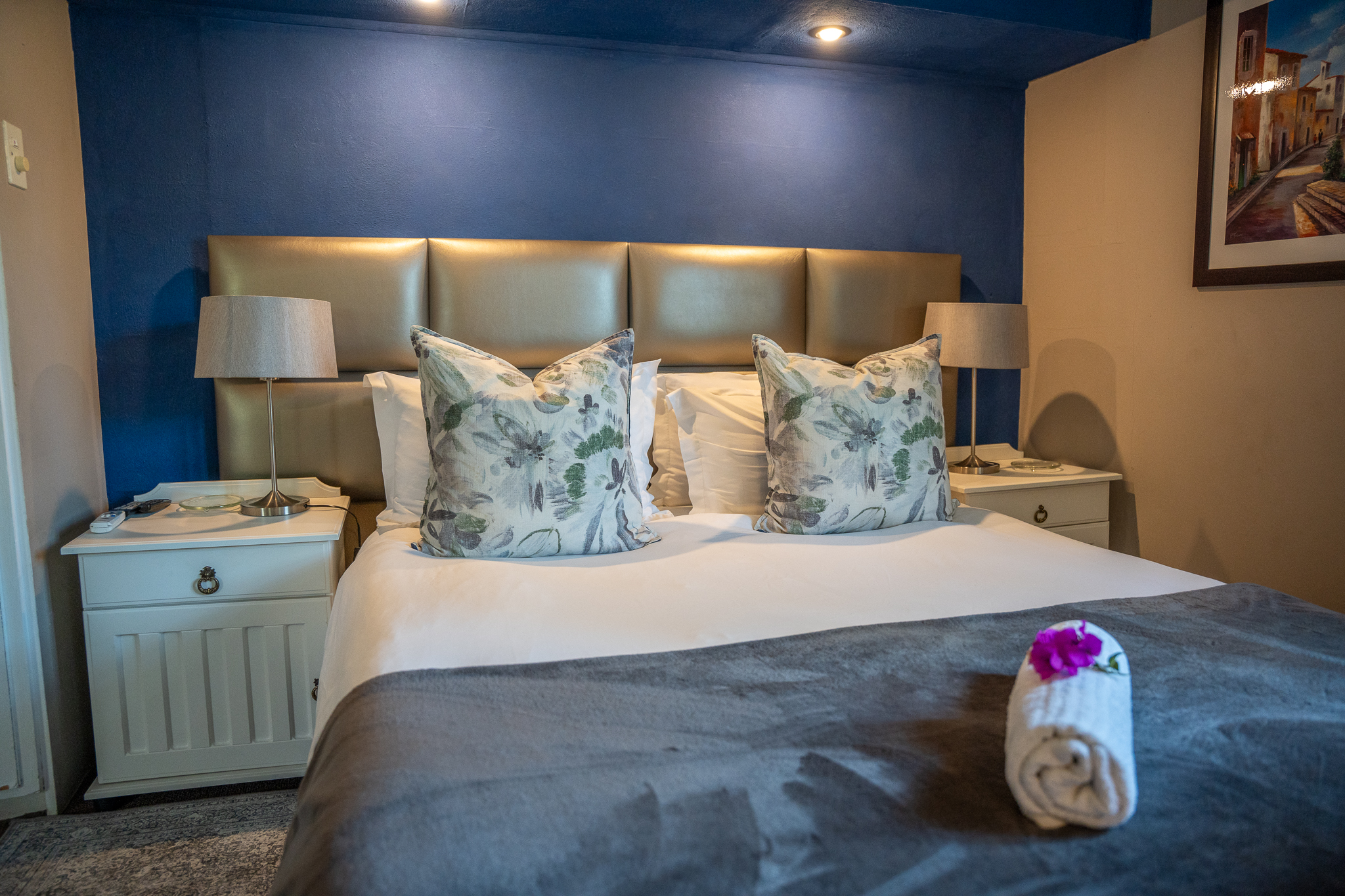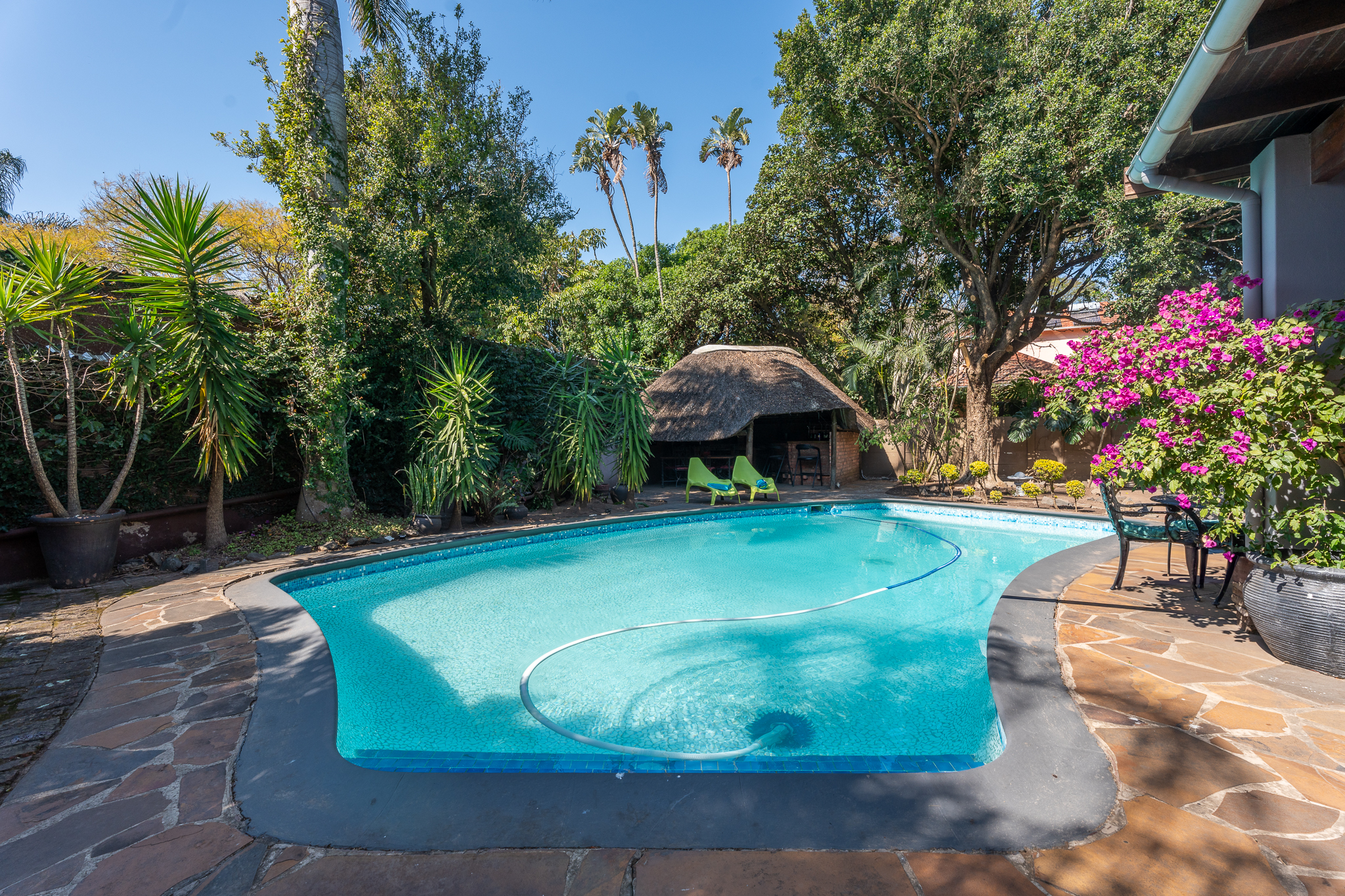 Our location ensures that you are less than ten minutes away from anywhere you need to be. The luxury ensuite bedrooms have an ambience of tranquility and style. All rooms are equipped with DSTV and air-conditioning with wireless fibre internet access throughout. Guests are invited to relax on the deck overlooking the sparkling blue swimming pool or enjoy a sundowner around a thorn-wood fire in the gazebo.